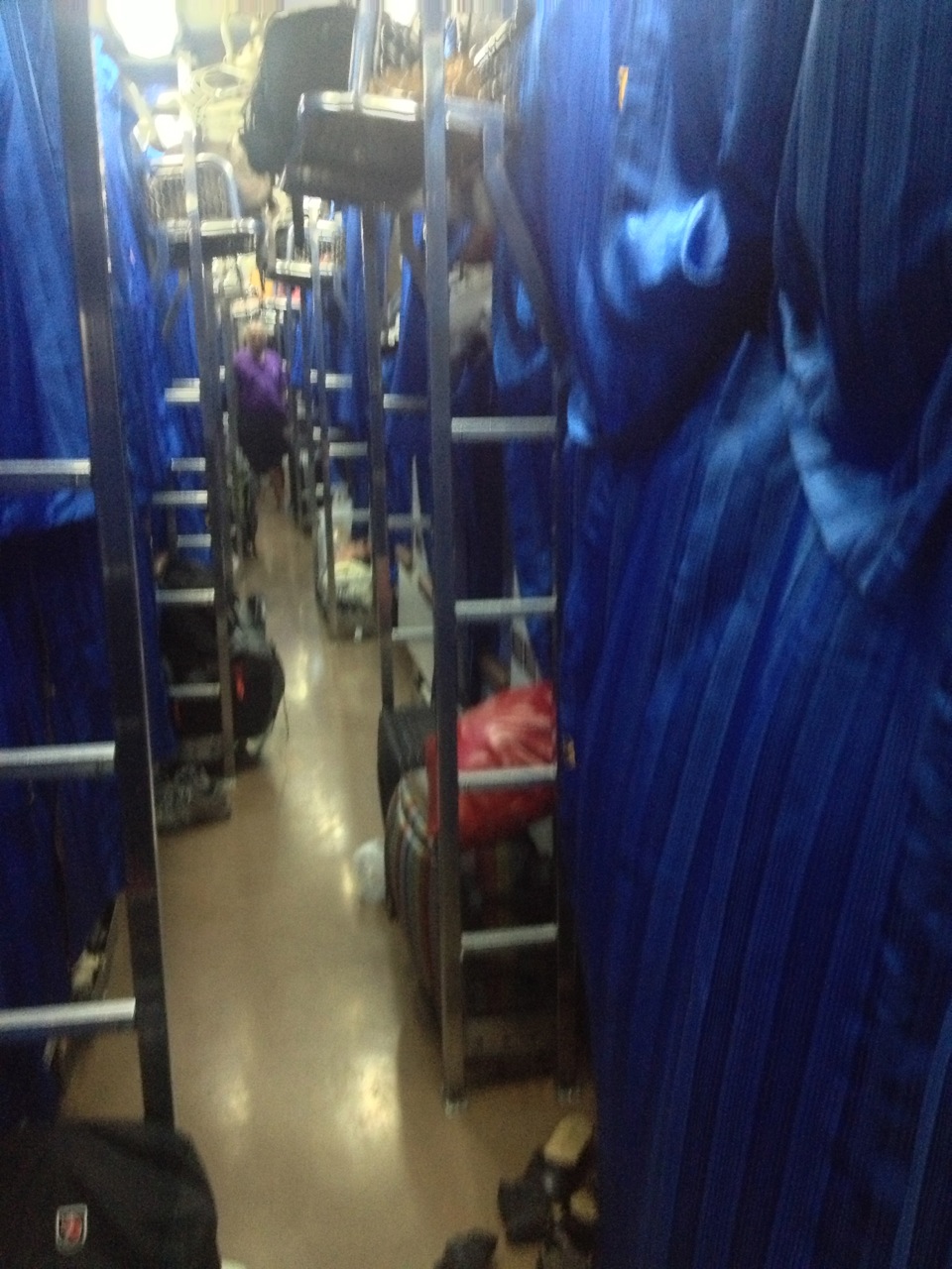 Things didn’t end up to be a complete wash though; apparently these seats pull out and the curved ceiling of the train doubles as a bunk-bed that combine to allow both of the people facing each other to have somewhere to sleep. You can see the end result in the picture below – with all of the sleeping curtains pulled shut.